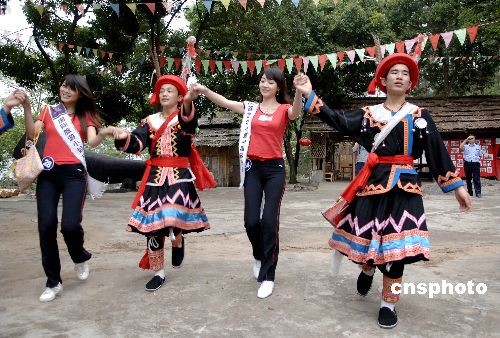 图:国际旅游小姐与广东苗族同胞欢聚(2)