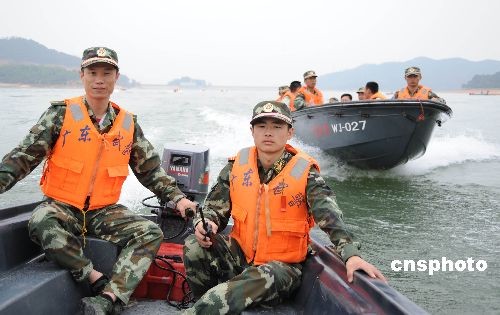 图:广东武警水上突击抢险队进行抗洪演练(5)