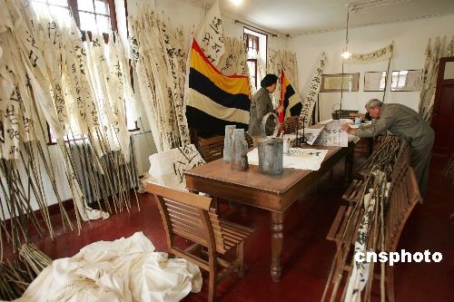 近日,北大红楼北京新文化运动纪念馆历时1年修缮,重新对外开放。纪念馆开放后新增李大钊办公室、蔡元培办公室、新潮杂志社等6个旧址复原室,让民众直观了解历史原貌。图为《新潮》杂志社原址,工作人员正在恢复其五四运动爆发前的原貌。1918年底,北大学生傅斯年、罗家伦、徐彦之发起成立新潮社,创办《新潮》杂志。“五四”前夜,北大学生们就是在这里制作了3000多面旗帜、标语,罗家伦的《北京学界全体宣言》,“中国的土地可以征服而不可以断送!中国的人民可以杀戮而不可以低头!”也是在这里起草书写完成,这份宣言也成为“五四”当天唯一的印刷品。中新社发 富田 摄