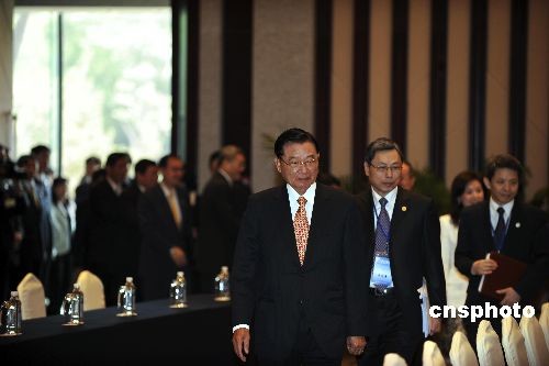 4月26日,海协会和海基会第三次会谈在南京紫金山庄举行,江丙坤率团入场。中新社发 廖攀 摄