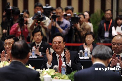 4月26日,海协会和海基会第三次会谈在南京紫金山庄举行,陈云林愉快发言。中新社发 廖攀 摄