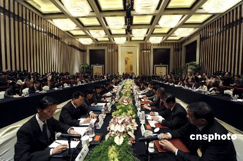 4月26日上午9时许,海协会海基会在南京紫金山庄会议中心紫金厅举行两会第三次会谈。中新社发 廖攀 摄