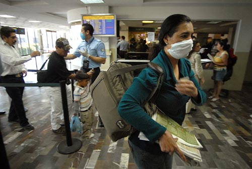 图:墨西哥严防猪流感 民众外出带口罩(3)