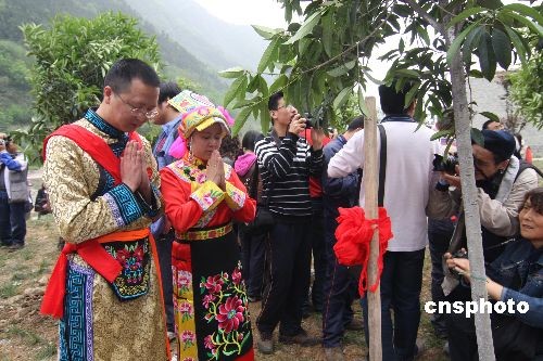 北川羌寨集体婚礼 20对新人震后重组家庭 (3)