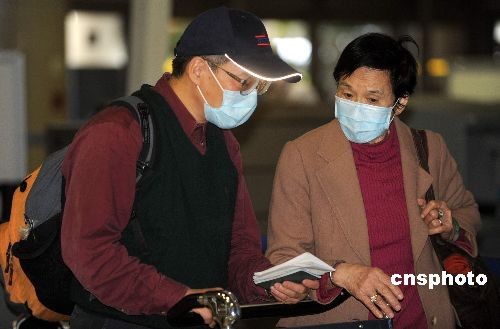 图:防范猪流感 旅客戴口罩抵达洛杉矶(2)
