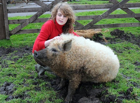 图:英国培育长的像绵羊的罕见金毛猪(2)