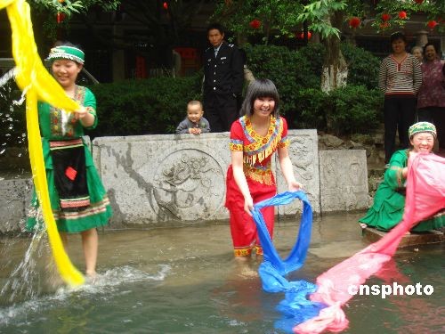 图为展现当地风情的农家女竹林浣纱。中新社发 周利朔 摄