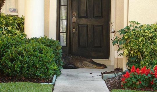 图:11英尺大鳄鱼爬到住户门外困住主人(2)