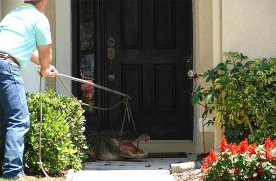 图:11英尺大鳄鱼爬到住户门外困住主人(3)