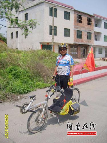 网友告诉记者,他随后同这名牛人攀谈了一段时间,牛人称自己的外号叫做“雪地孤星”,是一名北京的户外爱好者。此次骑车出行的目的地是深圳,从出发到现在他已经骑了13天。追问到他的车,他只称是自己整的,还摆出造型让网友拍照。当网友称要尽地主之仪请他吃饭时,他委婉的谢绝了。称还要赶路时间紧迫,便轻快的踏着车走了。