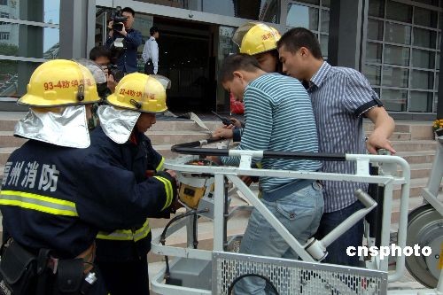 图为参加高层建筑灭火救援演练的福州消防官兵,用云梯营救“火灾现场”受困人员。中新社发 刘可耕 摄