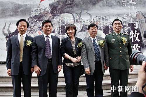 4月29日上午,由中国人民解放军总政治宣传部、中国文学艺术联合会、中国美协等单位联合主办的“史诗与牧歌——刘大为作品展”在上海美术馆隆重开幕。这次展览共展出刘大为中国画作品58件,水彩色粉作品40件,素描速写50件。