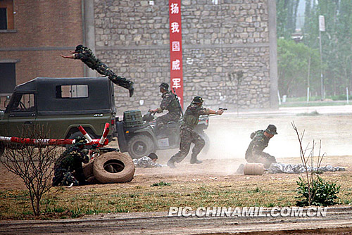 图:新疆军区某部官兵顶风冒雪到位巡逻