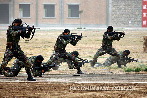 图:新疆军区某部特战队员演练实战反恐(4)