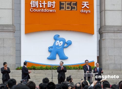 5月1日上午,在北京天安门广场东侧中国国家博物馆前,举行中国2010年上海世博会倒计时一周年暨计时牌启动仪式。仪式开始前,上海世博会吉祥物“海宝”表演秀吸引观众目光。