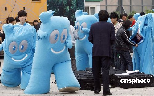 5月1日上午,在天安门广场东侧中国国家博物馆前,举行中国2010年上海世博会倒计时一周年暨计时牌启动仪式,现场众多可爱的“海宝”正在上装演出 。