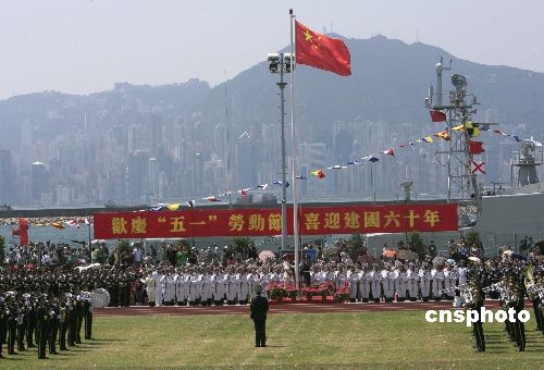 驻港部队举行阅兵仪式庆祝海军成立60周年(图)
