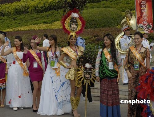 “2009中国昆明国际文化旅游节”5月1日在昆明世博园隆重开幕,正在昆明参加全球小姐国际城市形象大使大赛的近40个国家的佳丽参加了开幕式,为旅游节添色不少。