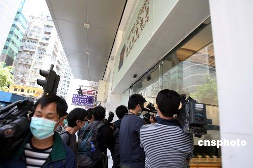大批香港传媒汇集因甲型H 1N1流感而被隔离的维景酒店采访,关注事态进展。中新社发 洪少葵 摄