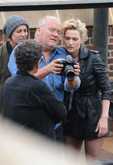 温丝莱特与摄影师一起看拍摄的照片。