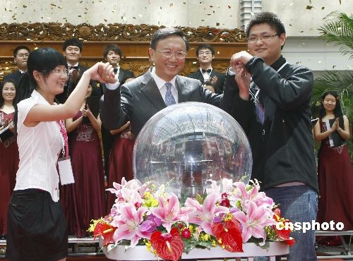 外交部部长杨洁篪出席外交部网站开通仪式,并与大学生代表携手启动外交部新版中文网站。中新社发 郑雄增 摄