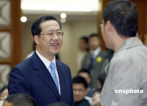 外交部发言人、新闻司司长马朝旭与大学生进行面对面交流。中新社发 郑雄增 摄
