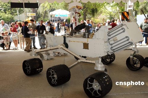 美国国家航空航天局(NASA)下属的喷气推进实验室(JPL)当地时间3日对公众开放,美国下一代核动力火星探测器——“火星科学实验室”一比一模型首次公开亮相。“火星科学实验室”计划耗资超过二十亿美元,原计划今年秋季发射升空,由于研发遭遇问题,被迫推迟到二0一一年秋季发射,预计二0一二年夏季登陆火星。“火星科学实验室”的体积和重量远超“机遇号”和“凤凰号”等前辈,它在火星上的存活时间更长,活动范围更广,性能也更先进。一旦发射成功,将成为有史以来进入外太空的最大科研装置。它的主要使命是寻找火星上过去和现在是否存在微生物等生命迹象。中新社发 张炜 摄