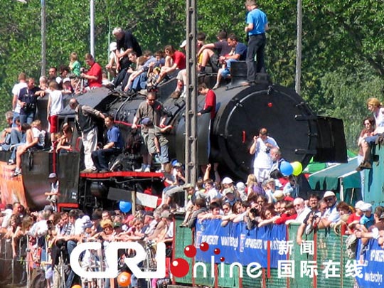 当天下午1点钟,随着20多台蒸汽机车同时拉响汽笛,本次巡游活动进入了最精彩的阶段。所有参加活动的蒸汽机车一辆接一辆地缓缓驶过观众看台,向游客展示它们的风采。这些机车来自波兰、德国、英国、捷克、斯洛伐克等国家,全部都是接近百岁高龄的老式蒸汽机车,其中最古老的一台出产于1907年。