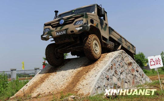 有“中国悍马”之称的枭龙越野车,由武汉一家民营企业历时10年独立设计完成,零部件100%国产化,具有完全知识产权与自主品牌。在大部分总成通用情况下,可开发成30多个不同车型,广泛适用于石油、水利、地质勘探等领域。(文涛 摄)