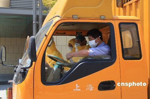 5月5日,墨西哥政府安排的包机将接回4月30日AM098航班墨西哥籍乘客和机组人员。图为上海参加墨西哥籍乘客和机组人员转运行李的工作车将接受消毒。中新社发 潘索菲 摄