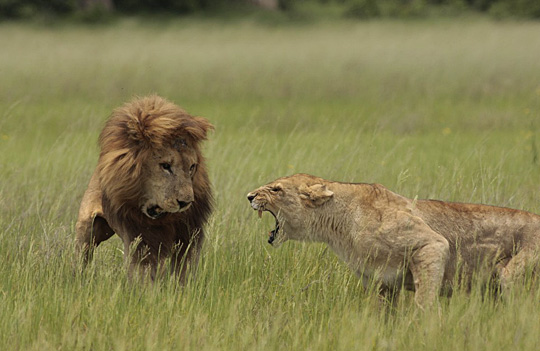 非洲一母狮不满伴侣"另寻新欢"对其大发狮威(图)