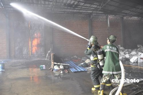 图:广西钦州泡沫厂突发大火 百余消防官兵出动(2)