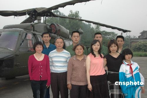 [汶川地震一周年]映秀被救地震伤员看望某陆航团官兵(3)