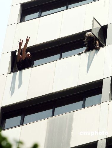港人为维景酒店隔离住客打气 隔着玻璃击掌回应