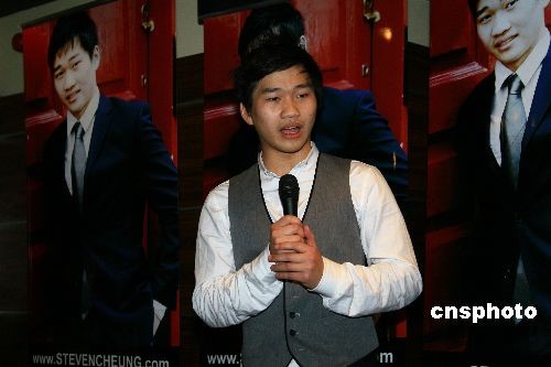 19岁的英国华裔青年张敬龙,当地时间5月7日日在伦敦正式宣布参加欧洲议会选举,如果这位二00九年度黛安娜皇妃大奖获得者成功当选,他将成为欧洲议会最年轻的议员,亦为首位参加该选举的英国华裔。中新社发 魏群 摄