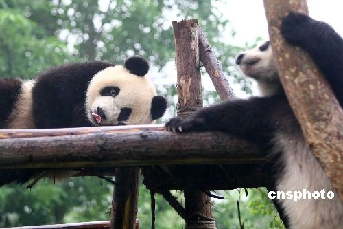 5月7日,成都大熊猫繁育研究基地主任助理王成东表示,成都大熊猫繁育研究基地将在都江堰建立大熊猫野外放归中心,以此作为大熊猫野化放归的过渡阶段。该中心的设立将实现一半人工,一半自然生态环境。王成东说,圈养不是保护大熊猫的最终目的,而是为了野外放生。据了解,成都大熊猫繁育研究基地目前有圈养大熊猫83只,是世界上除卧龙外第二大大熊猫圈养地。图为该中心内的大熊猫。中新社发 富田 摄