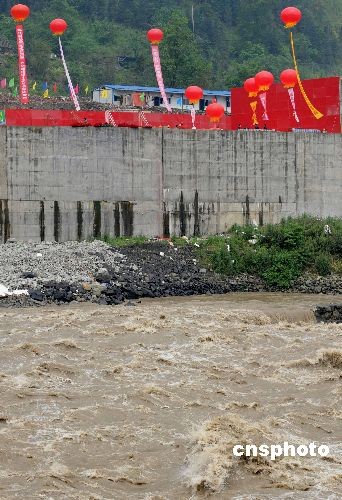 四川大地震中遭毁坏的都江堰至映秀高速路在岷江畔修复,在五月大地震一周年前夕举行通车典礼。中新社发 贾国荣 摄