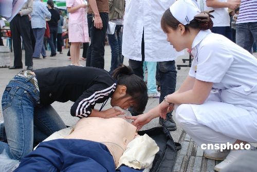 图为医务人员为民众义诊。中新社发 周利朔 摄