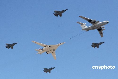 图:图-160远程战略轰炸机飞过红场