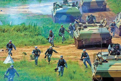 海军陆战队某旅引导官兵以过硬的军事素质践行当代革命军人核心价值观。近日,他们把所属分队拉到复杂地域,展开各专业单兵战术和各兵种间的合成演练,全方位锤炼部队战斗力。 (余黄伟、郑昭聪、仲继军)