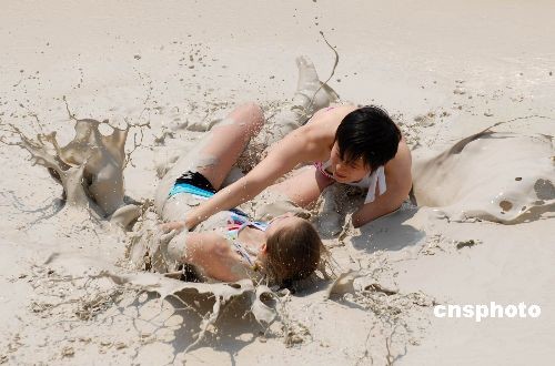 图:中外美女泥浆搏击大赛在武汉举行