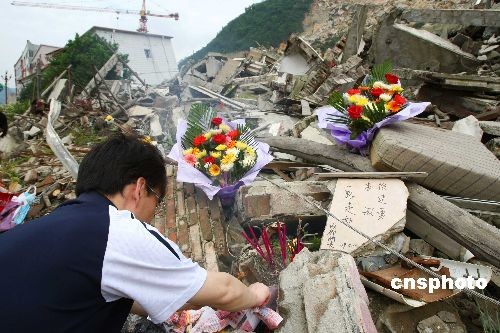 [汶川地震一周年]北川遗址局部解禁 民众祭奠遇难亲人