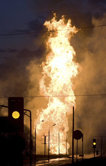 莫斯科天然气管道爆炸引发二战后最大火灾