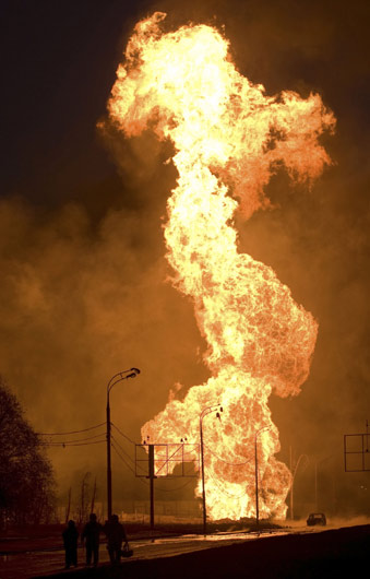莫斯科天然气管道爆炸 百米火焰冲天(3)