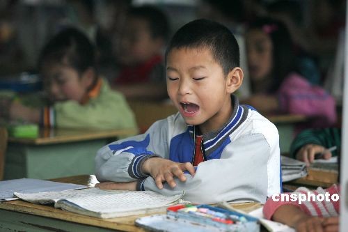 小学生在板房小学内认真的上课。中新社发 富田 摄