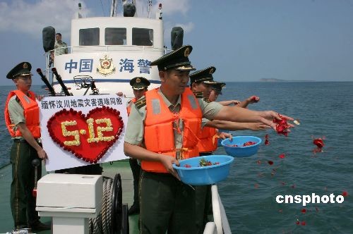 [汶川地震一周年]海南海警开展5.12海上花祭纪念活动(2)