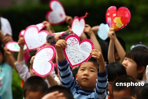 [汶川地震一周年]成都儿童制作祝福卡为灾区小朋友祈福(2)