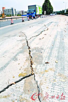 原因:路面下沉与武广铁路金沙洲隧道施工有关