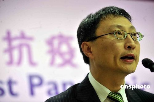 五月十三日,香港食物及卫生局公布,再确诊一宗甲型H1N1流感个案,这是香港至今确诊的第二例“甲流”个案。香港卫生防护中心总监曾浩辉在记者会上表示,患者是一名二十四岁香港男子,十一日晚由美国旧金山乘搭国泰航机CX879返港,在抵达机场后,向诊所求医,直接由救护车送往玛嘉烈医院隔离治疗,并无进入本地社区。中新社发 谭达明 摄