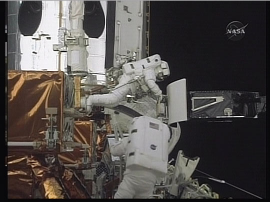 图:美宇航员对哈勃太空望远镜进行维修(4)
